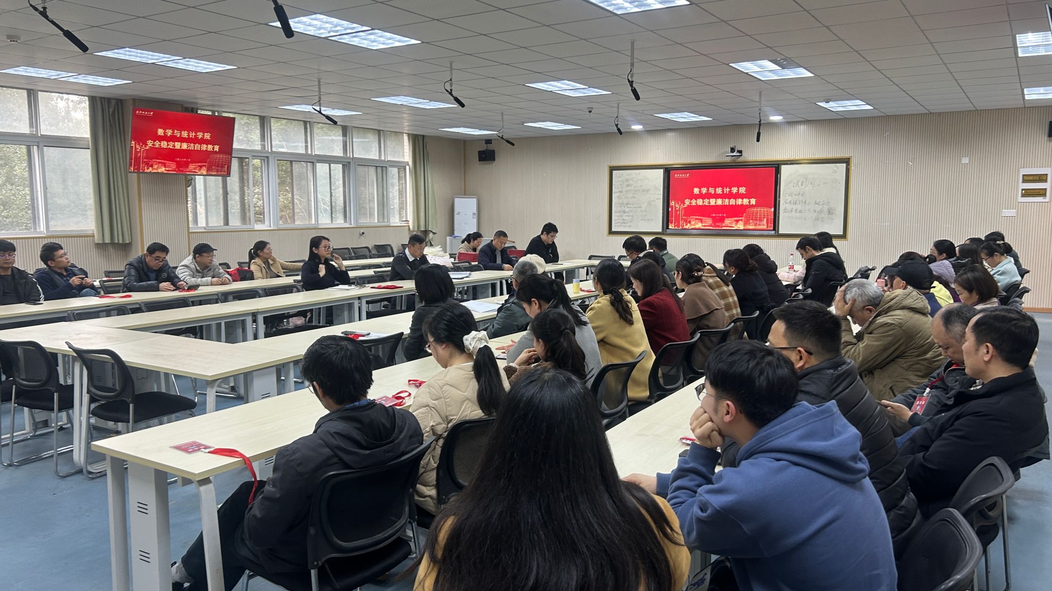院党委李楠做了专题讲话。他要求全体教职员工提高政治站位,坚决守牢安全稳定底线。近段时间,不同地方特别是多所学校暴露了消防安全等方便的隐患,我们要提高警惕、举一反三。学院是教书育人主阵地,要切实筑牢安全底线与思想防线。意识形态、网络平台管理、工作站管理、心理健康、消防安全等方面要常抓不懈。他要求全体教职员工要坚持严于律己,永葆清正廉洁政治本色。廉洁自律是党员的立身之本,也是教师的职业操守。我们要始终把纪律和规矩挺在前面,严格落实中央八项规定及其实施细则精神,做到心有所畏、言有所戒、行有所止。全体教师要恪守师德师风,践行“四有”好老师标准,以高尚的品德感染学生,以廉洁的作风引领风尚。他指出,要强化责任落实,确保工作实效。各系(室)、中心负责人要切实履行“一岗双责”,落实主体责任,既要抓好业务工作,也要抓好安全稳定和党风廉政建设工作。要开展所在系、中心、办公室人员的提醒教育,确保人人知晓、人人遵守。要建立监督检查机制。学院将组织专门力量,对寒假前安全稳定工作落实情况进行全面检查。对管理不善,漏报瞒报造成不良影响,甚至是事故的,将依规依纪追责问责。