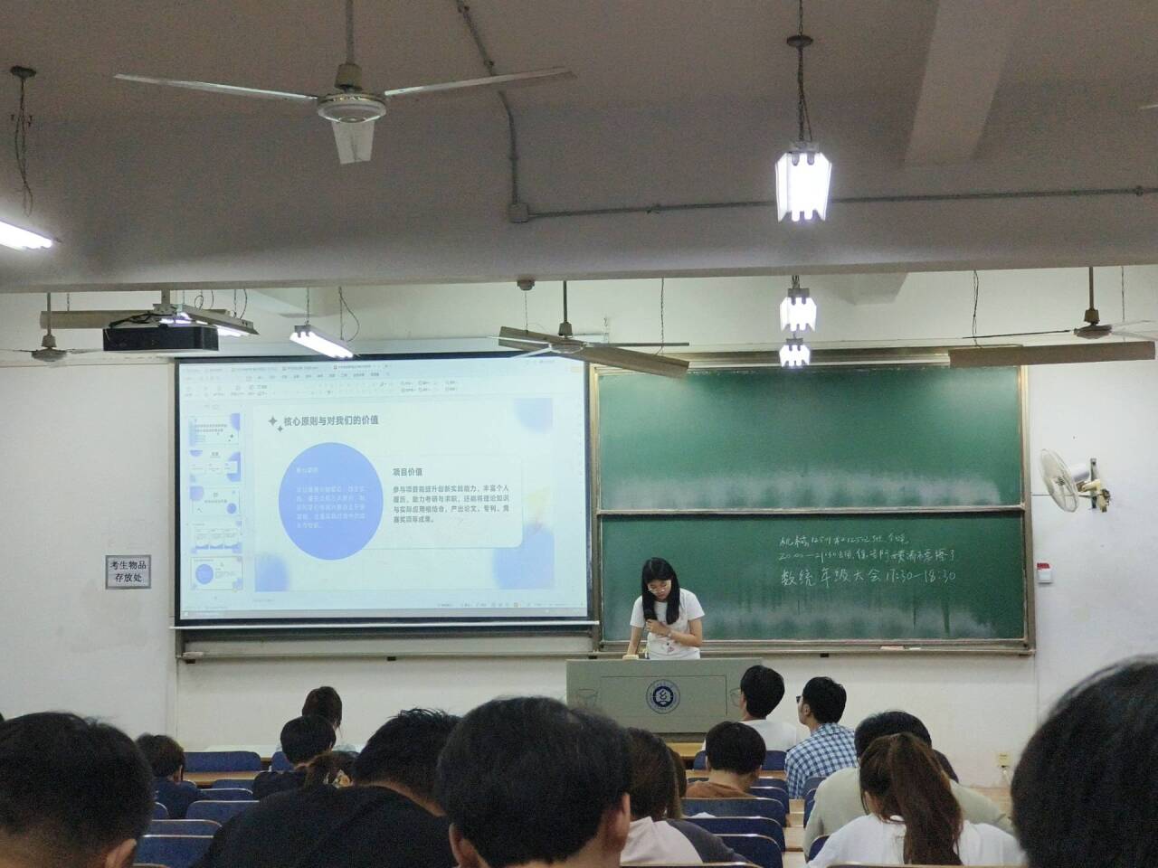 随后,方金玉同学结合大学数学学习的痛点与自身经验,分享了可落地的学习方法。她提到,数学分析、离散数学相较于高中更注重逻辑推导与抽象思维,需构建“主动学习”模式:课前通过教材目录、课件提纲梳理知识框架,标记出“难懂的定理”“陌生的概念”,带着问题听课;课堂上重点记录老师的推导思路、公式适用条件及易错点,而非单纯抄录内容,遇到疑问及时标注,课后积极解决问题,避免问题堆积。