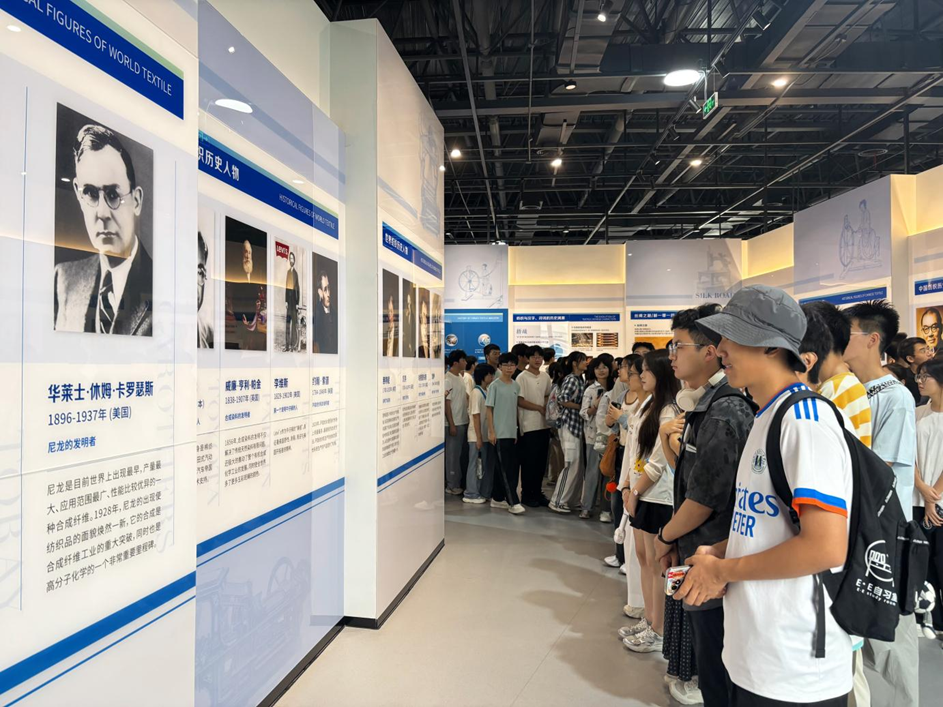 为增进大一新生对学校的归属感,传承“自强不息,经天纬地”的纺大精神,9月13日上午,学院党委副书记陈国鹏、辅导员曾琦组织全体2025级新生前往纺织科技馆,开启一场兼具知识性与趣味性的纺织文化探索之旅。在讲解员的引导下,同学们穿梭于“传统织造”“现代产业”“未来纺织”三大展区,从黄道婆纺车到万吨级碳纤维生产线,从月面国旗“石头版”到火星探测器降落伞,一件件实物、一段段视频,生动诠释了“纺织+”如何服务国计民生、走向星辰大海。