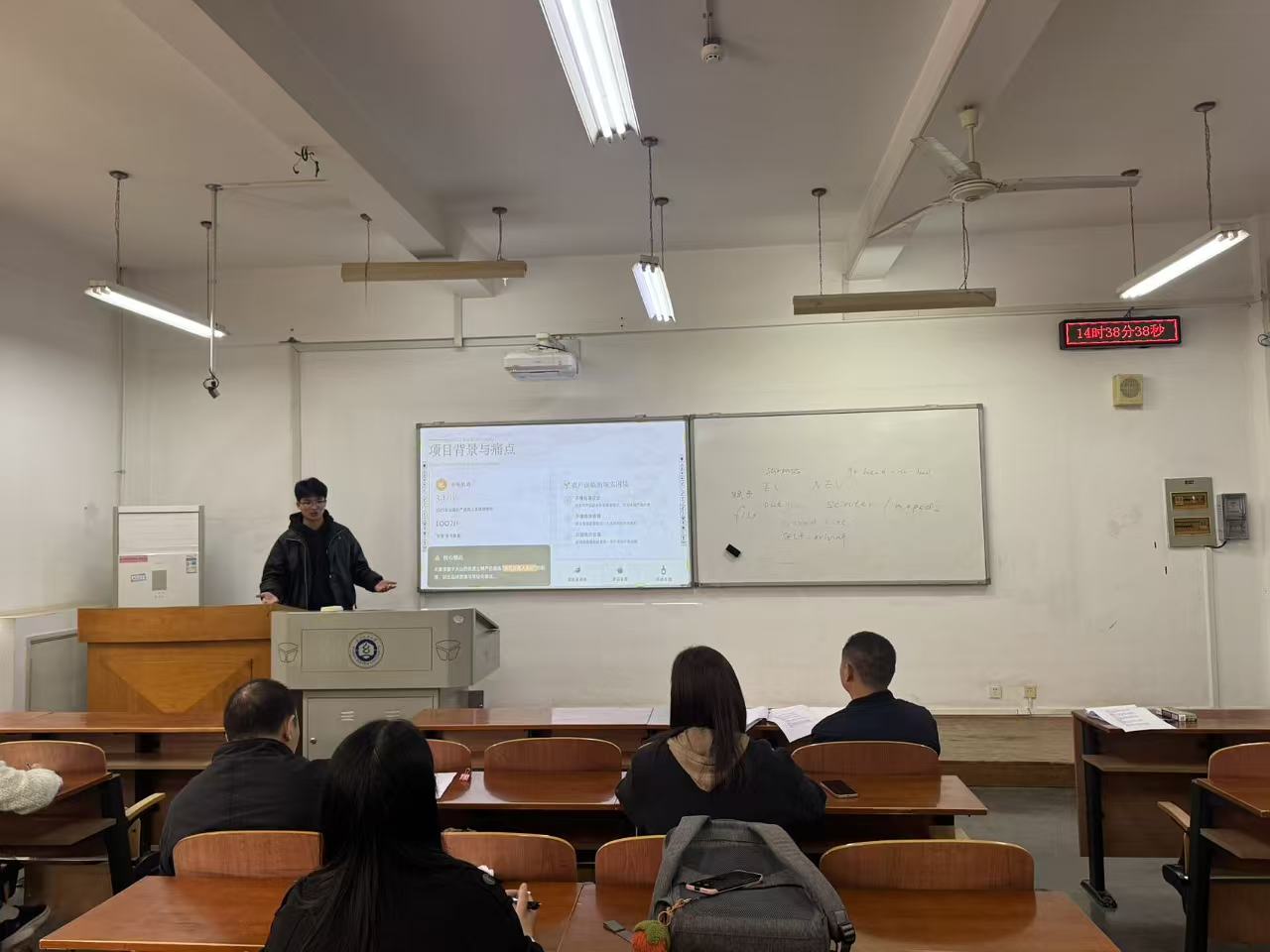 各参赛团队汇报结束后,评委老师对其项目进行了深入点评。老师们从项目的技术可行性、创新性、商业模式、团队构成等方面进行细致分析,提出针对性建议,发现项目中的不足之处,并指导其进一步优化和完善。这种“一对一”的点评模式,不仅为参赛团队提供了宝贵的专业指导,也为其他学生提供了学习和借鉴的机会,为冲刺校赛、省赛奠定基础。经过书面评审、现场答辩等环节,经评审打分,共6支队伍脱颖而出,作为学院代表队进入校赛选拔阶段。