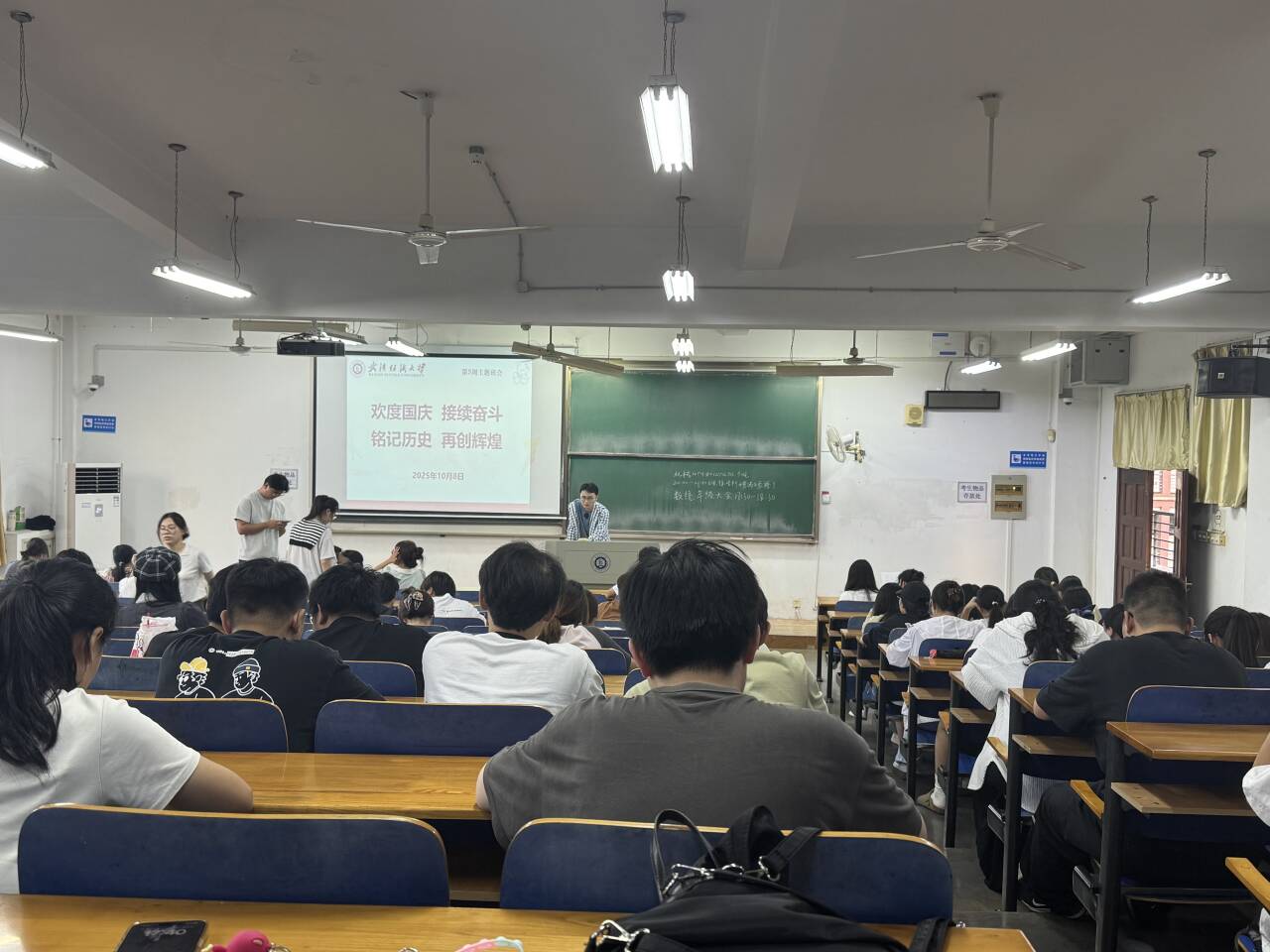 本次班会以欢度国庆、铭记历史为契机,激发接续奋斗的精神,同时关注心理健康,助力同学们共享生命阳光、再创辉煌。10月8日晚,WilliamHill体育于崇志楼展开主题班会。WilliamHill体育全体学生参加,班会由各班班长主持。