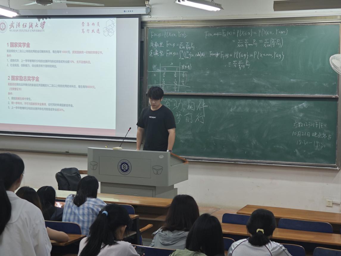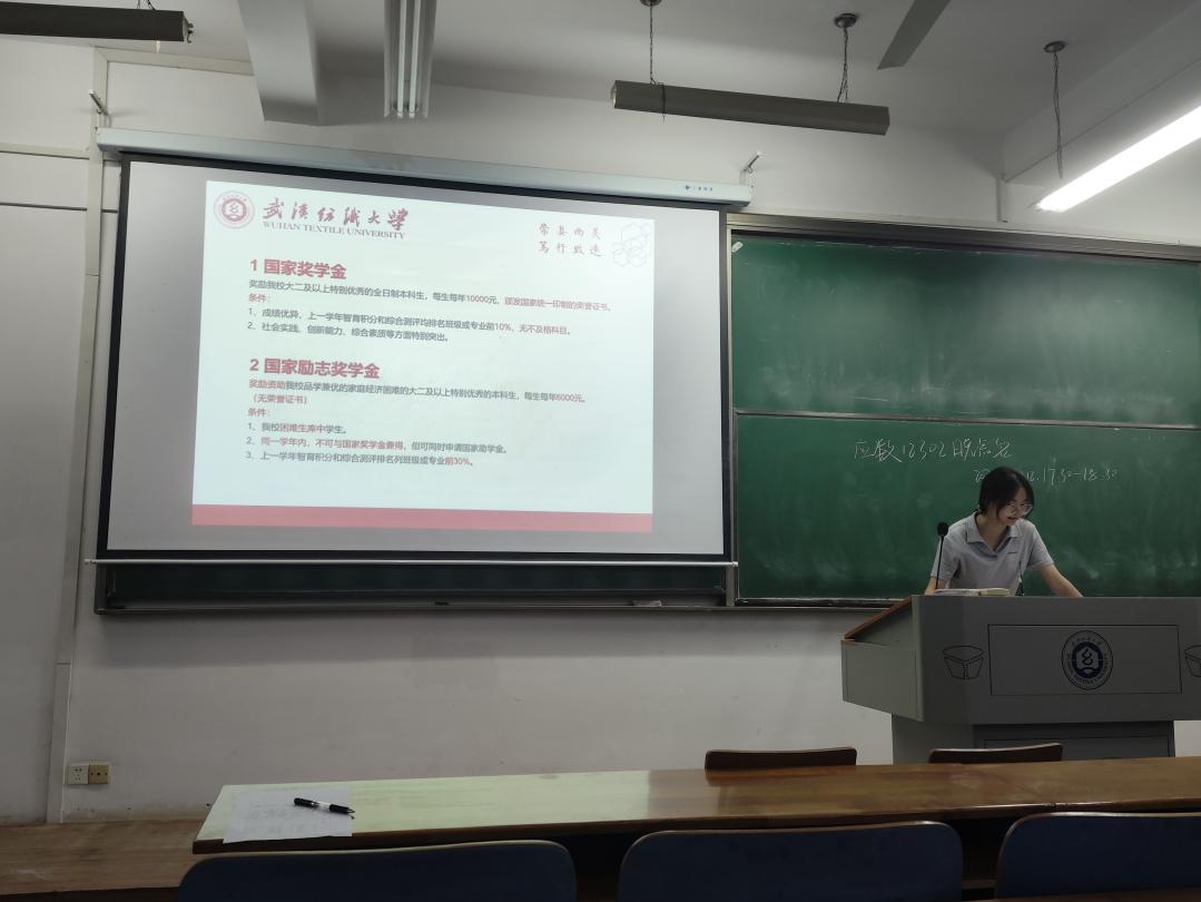 随后团支书介绍了奖学金体系,包括国家奖学金、国家励志奖学金、校级奖学金及社会捐赠类奖学金的评选标准与奖励金额,强调奖学金不仅是对学业成绩的肯定,更是对综合素质的全面考察,鼓励同学们在保持优异成绩的同时积极参与科研竞赛、志愿服务与校园活动,全面提升个人竞争力。