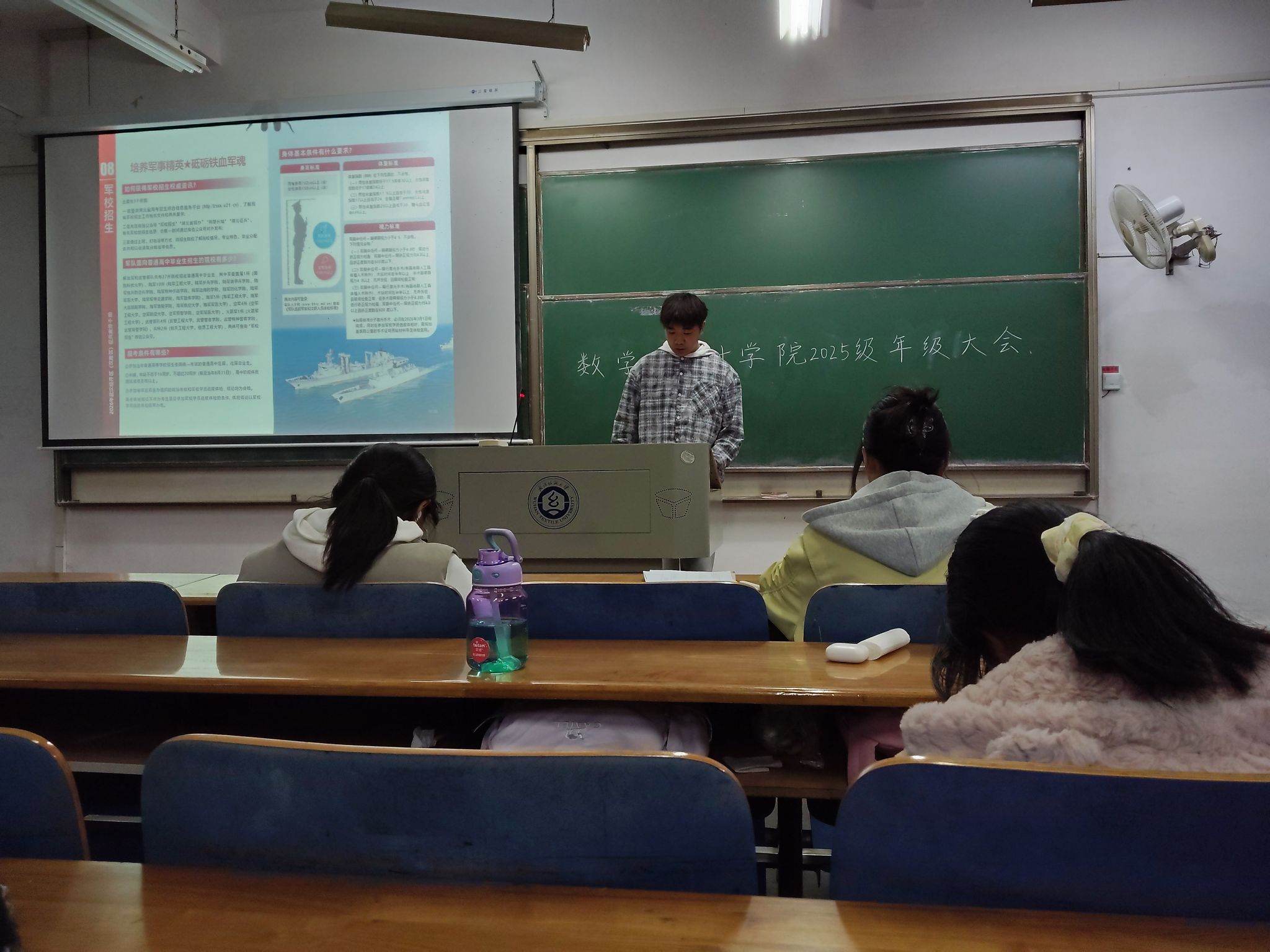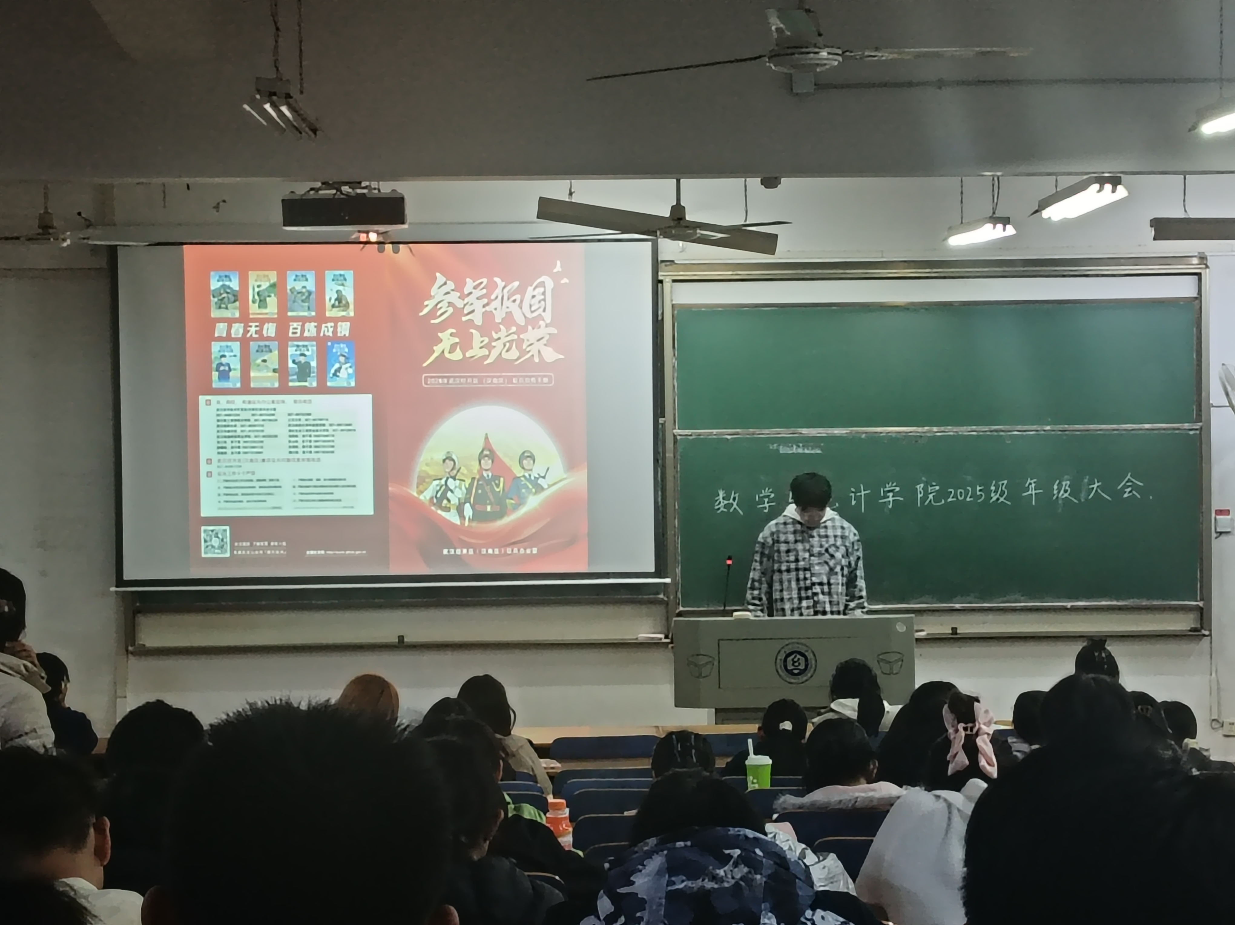班会主持人向同学们介绍,今年征兵工作突出高素质兵员征集,重点面向高校毕业生、在校生和应届高中毕业生,鼓励理工科、医疗、信息技术等专业青年投身国防,为军队现代化建设注入新鲜血液。同时,军营现代化建设为青年提供了施展才华的广阔舞台,无论是通信技术、数据分析等专业技能,还是组织管理、应急处置等综合能力,都能在军营中得到充分锻炼,为未来职业发展奠定坚实基础。
