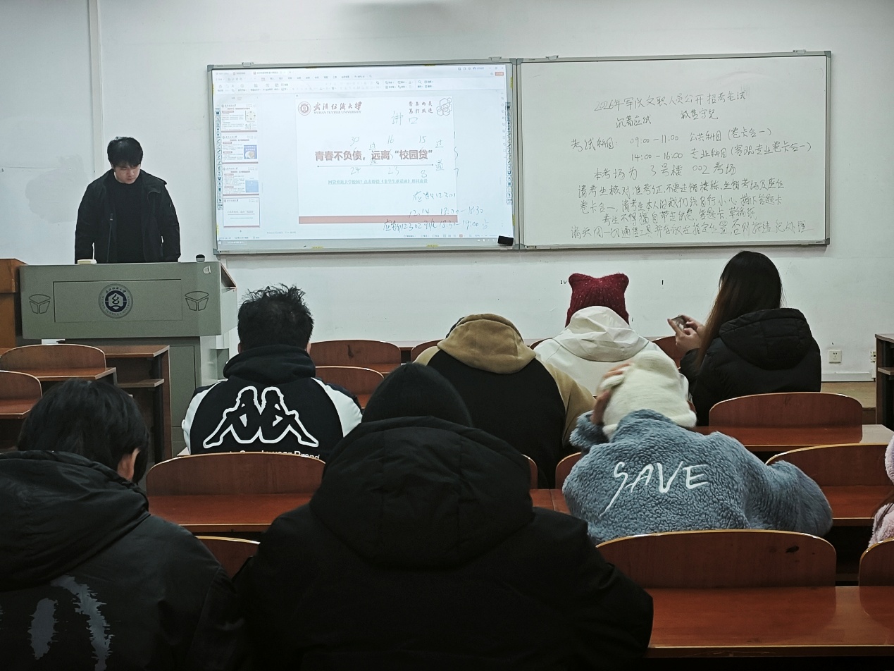 针对校园贷的隐蔽性与危害性,班会专门设置了风险警示环节。主持人通过 PPT 展示、短视频播放等形式,揭露了校园贷 “低息诱惑、高额罚息、暴力催收” 的真实面目,剖析了多起校园贷导致学生陷入债务危机、影响身心健康的典型案例。同时,老师向同学们普及了理性消费知识,引导大家树立 “量入为出、适度消费” 的观念,提醒大家若有合理资金需求,应通过正规渠道向学校、家长求助,坚决远离各类 “套路贷”“美容贷” 等不良借贷产品,守护自身财产安全与合法权益。