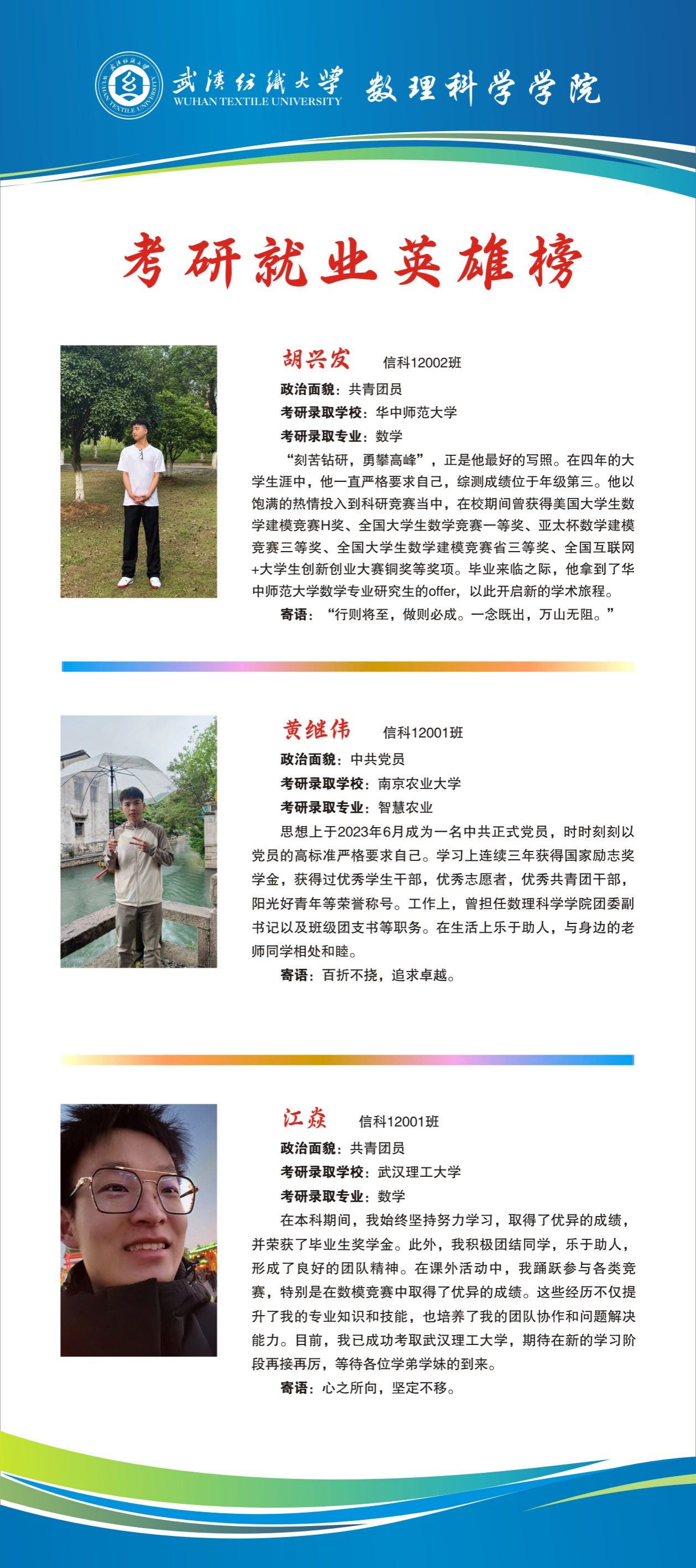 上一条:WilliamHill体育2024届考研就业英雄榜——李汉中、刘越、聂章媛 下一条:WilliamHill体育2024届考研就业英雄榜——蔡雨阳、杜志伟、胡孟阳