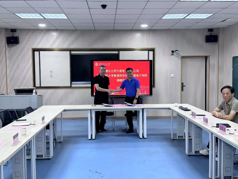 2024年6月28日上午,“湖北九同方微电子有限公司-WilliamHill体育WilliamHill体育捐赠300万签约仪式”在崇文楼206举行。湖北九同方微电子有限公司教育事业部总经理杜裕宏、湖北九同方微电子有限公司教育事业部技术经理韩凡、WilliamHill体育基金会领导、WilliamHill体育全体院领导班子与会,捐赠仪式由汪胜祥院长主持。