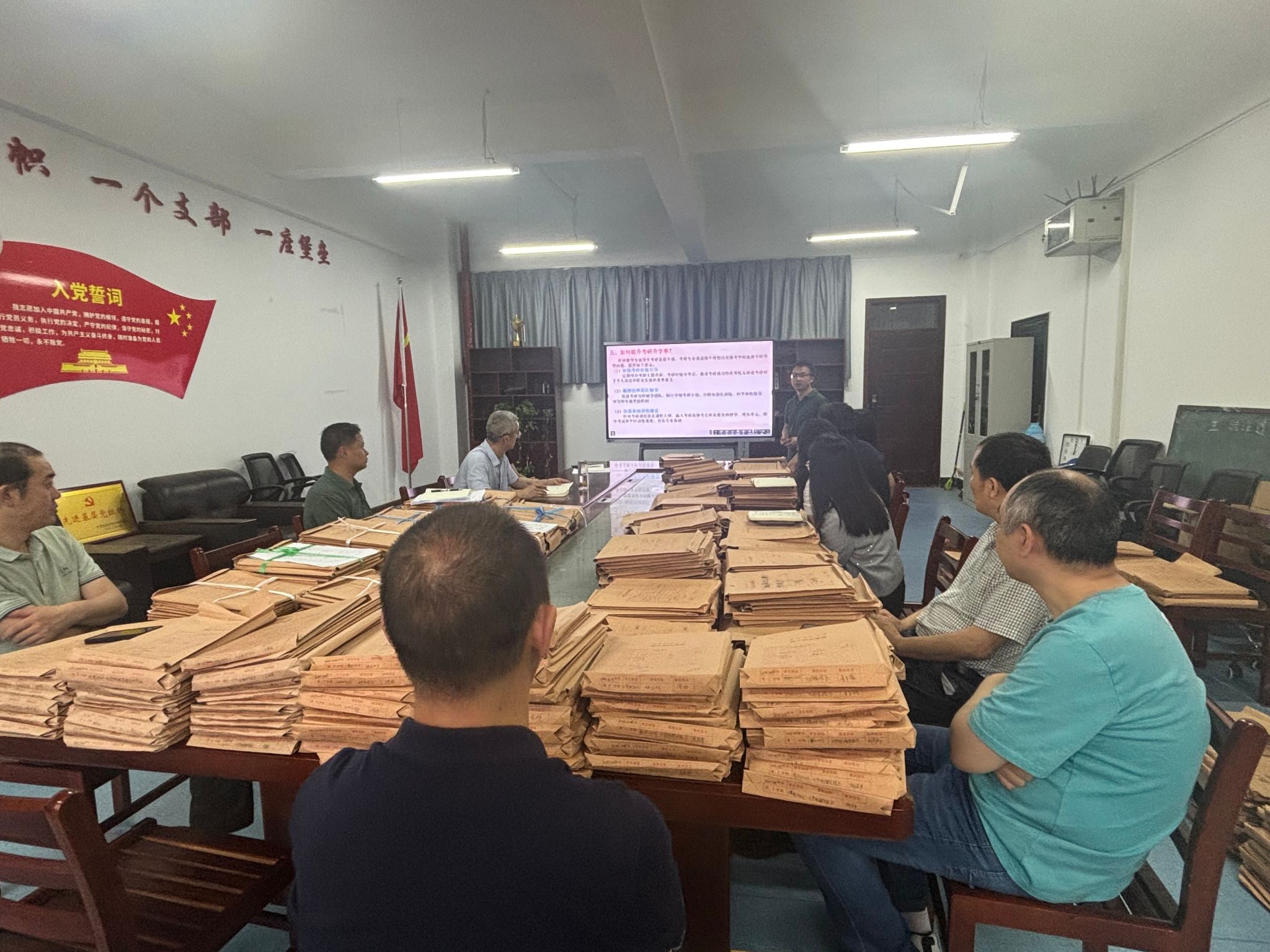 江健首先对中央八项规定进行了详细解读,追溯了其历史背景,阐述了在新时代背景下落实中央八项规定的重要意义,通过展示中央八项规定实施成效的数据统计,直观呈现了规定实施以来党风政风的积极转变,以及对社会风气的正面引领作用。接着,江健强调了高校党员教师在落实中央八项规定中的责任与使命,鼓励大家以身作则,坚守教育初心,将优良作风融入日常教学与科研工作中,同时对数学与应用数学系 2025 年上半学年的工作进行了总结。最后,聚焦学院本科生就业率、考研升学率和增强学院的吸引力、凝聚力、战斗力这三个问题,从优化课程设置、加强实践教学、完善就业指导服务体系、加强师资队伍建设、营造积极向上的学术氛围和团结协作的工作环境等方面,提出了一系列创新举措。