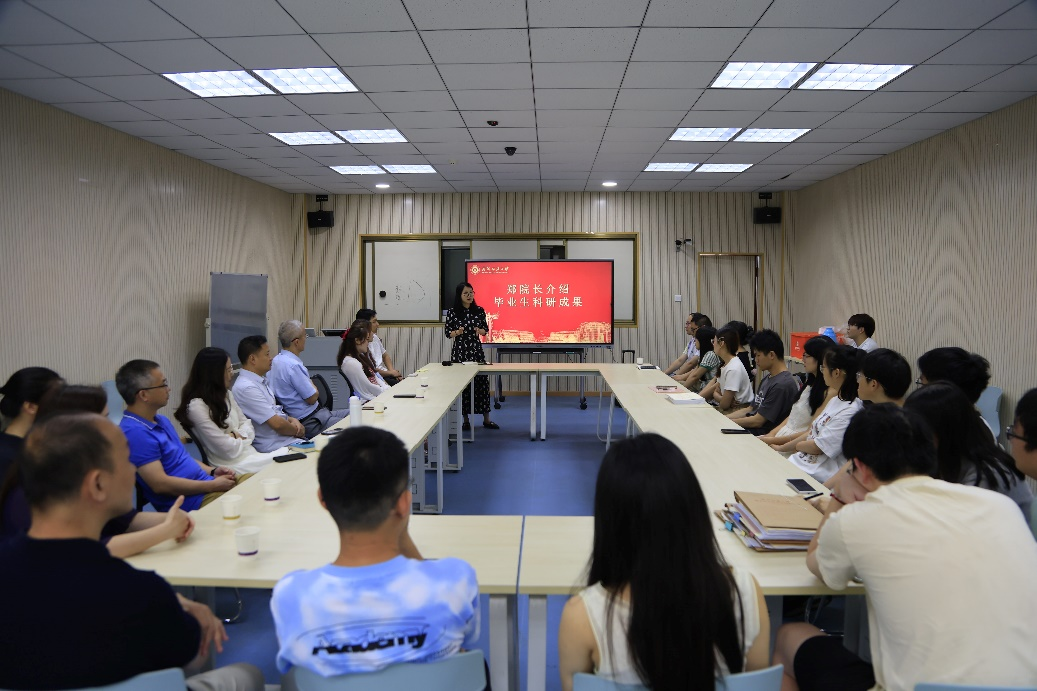 随后,郑仟副院长从科研论文、学术报告、获批项目、竞赛获奖四方面总结了本届研究生的科研成果。郑院长对本届研究生严谨求实的科研态度和开拓创新的学术精神给予了高度评价,认为同学们以实际行动践行了"追求卓越"的学术理念。