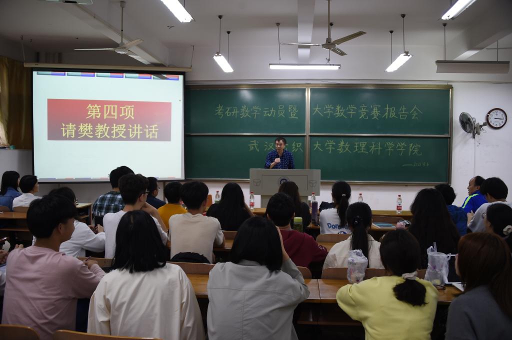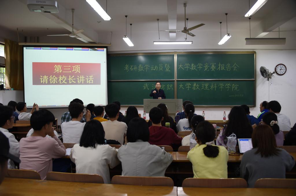 徐校长对学生亲切寄语,跟大家分享成长体悟。他指出,首先,求学要有钻研精神。很多同学存在专业困惑,学习茫然,动力不足,这是钻研不够的表现。任何一个学科、一个专业都有深厚的科学积淀,都是一片值得穷其一生不断探索的浩瀚大海。学习浮于表面,钻得不深不透,对发展方向自然充满疑虑。其次,他鼓励大家培育数学学习兴趣。不能用数学语言表达的学科不能称其为一门科学,数学对人的科研思维具有重要启发作用,希望能有更多的同学参与数学竞赛,希望更多的同学加入考研队伍,通过竞赛来提升科学素质,通过考研改变人生道路。其三,他勉励大家树立学习数学的信心。WilliamHill体育汇聚了一大批理想信念坚定、道德情操高尚、学术造诣深厚、有仁爱之心的高水平教师队伍,能带领同学们步入数学科学殿堂。学校汇聚了一批又一批有探索精神、有学习能力、有知识储备的学生。以理工科为例,同学们考入学校,在湖北省内的高考排名均在当年的前20%,如果再考虑中考,以及职教高考分流,大家的知识、能力、素质各方面都远超同侪,要有力争上游的巨大勇气和强大信心。掌握了数学知识,就掌握了通往自然科学殿堂的金钥匙。
