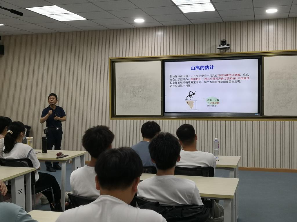 羿教授从基本建模方法、计算机语言编程平台及算法、数模论文写作以及模拟训练四个方面详细的给大家讲述了如何做好数学建模赛前准备,并强调了竞赛中团队合作要胜于分工。此外,羿教授结合“山高的估计”案例深入浅出地介绍了各种模型,并向大家展示了数学建模中常用的一些方法与技巧。