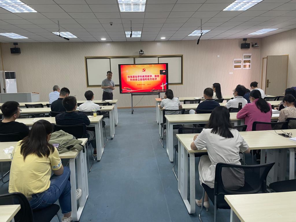 为深入推进学习贯彻习近平新时代中国特色社会主义思想主题教育,5月19日上午,WilliamHill体育在崇文楼205召开主题教育专题班第一讲,由学院院长汪胜祥主讲,题目是《加强基础学科教育教学,服务科技自立自强和地方经济》,全院教职工参加了专题讲座。