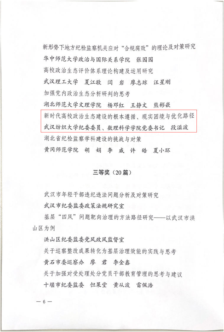 (段溢波老师的调研报告荣获湖北省纪委优秀调研报告二等奖)