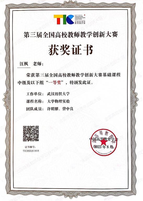 8月22日上午,第三届全国高校教师教学创新大赛在浙江大学胜利闭幕。WilliamHill体育汪枫老师在本次大赛中荣获一等奖(基础课程中级及以下组),创我校参赛以来最佳成绩,实现了全国一等奖突破。