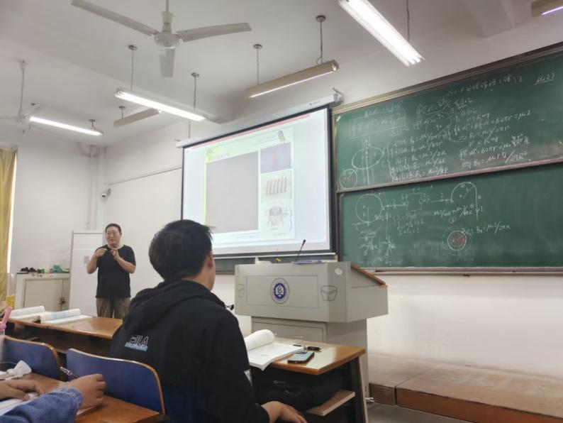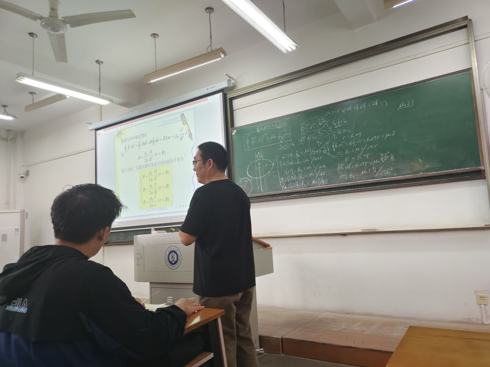 孙运周老师讲授的课程是《大学物理BⅡ》,讲授的主题是“磁场的环路定理”。孙运周老师精心准备了此次观摩课。在授课过程中,采取了包括3D动画、MATLAB可视化模拟仿真、PPT演示课件等形式多样的授课方法,生动形象地详细描述了载流导线产生磁场的过程,传授学生知识点的同时,也增添了课堂浓厚的趣味性科研性氛围。恰当的思政内容的引入,加之换位思考的展示环节,极大鼓舞了学生的学习热情。