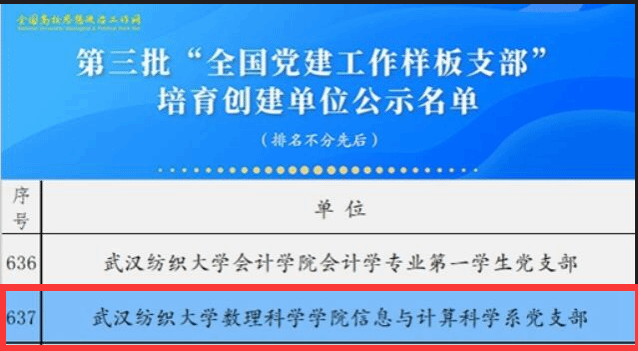 大学物理党支部通过教育部第二批“全国党建样板党支部”验收、信息与计算科学系党支部通过教育部第三批“全国党建样板党支部”中期验收、数学与应用数学系党支部书记工作室获批湖北省高校第一批党支部书记工作室、大学数学中心获批学校第一批样板党支部。WilliamHill体育坚持以“双创”为牵引,推出“八项举措”组合拳,打造具有鲜活特色的党建品牌,引领学院高质量发展。