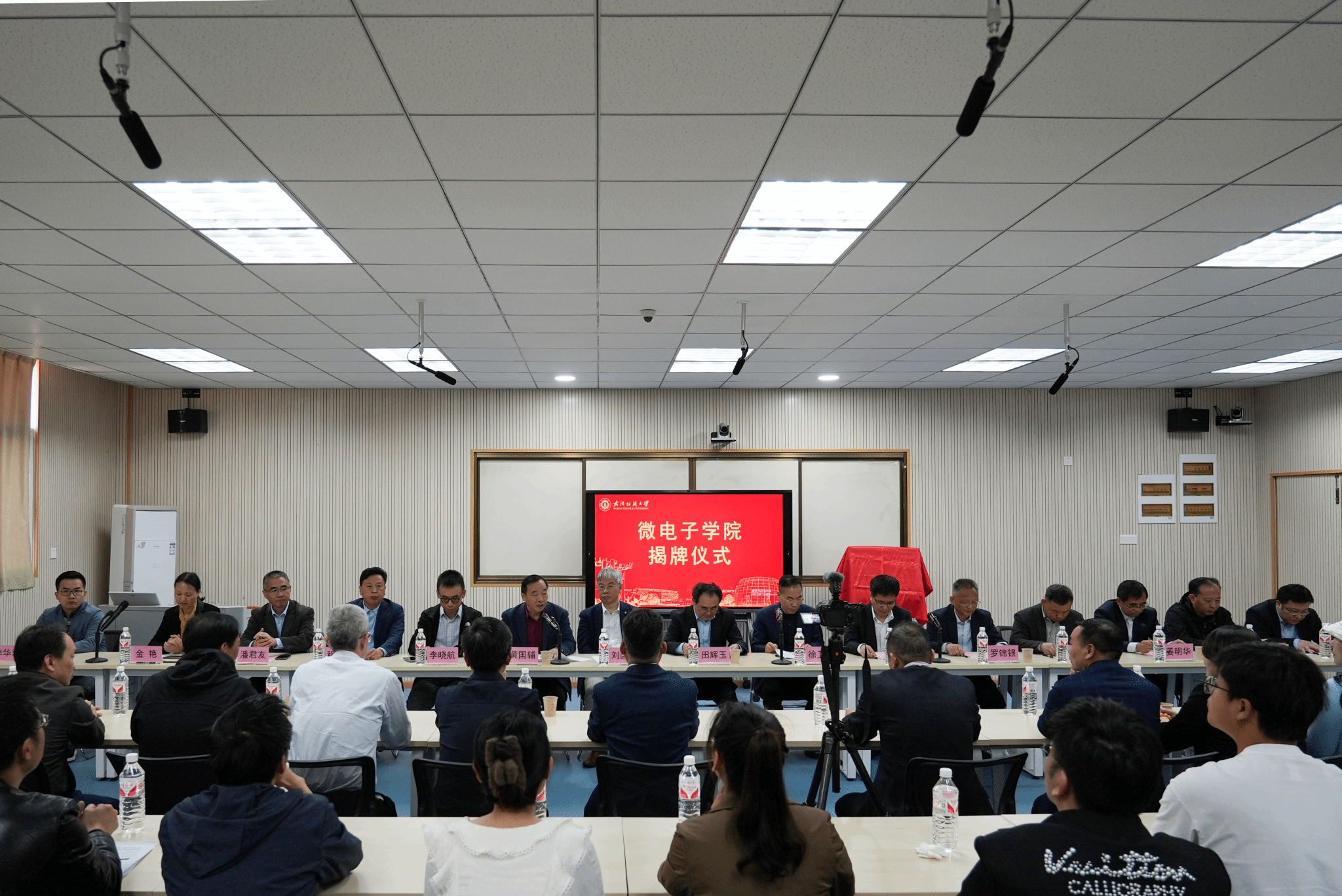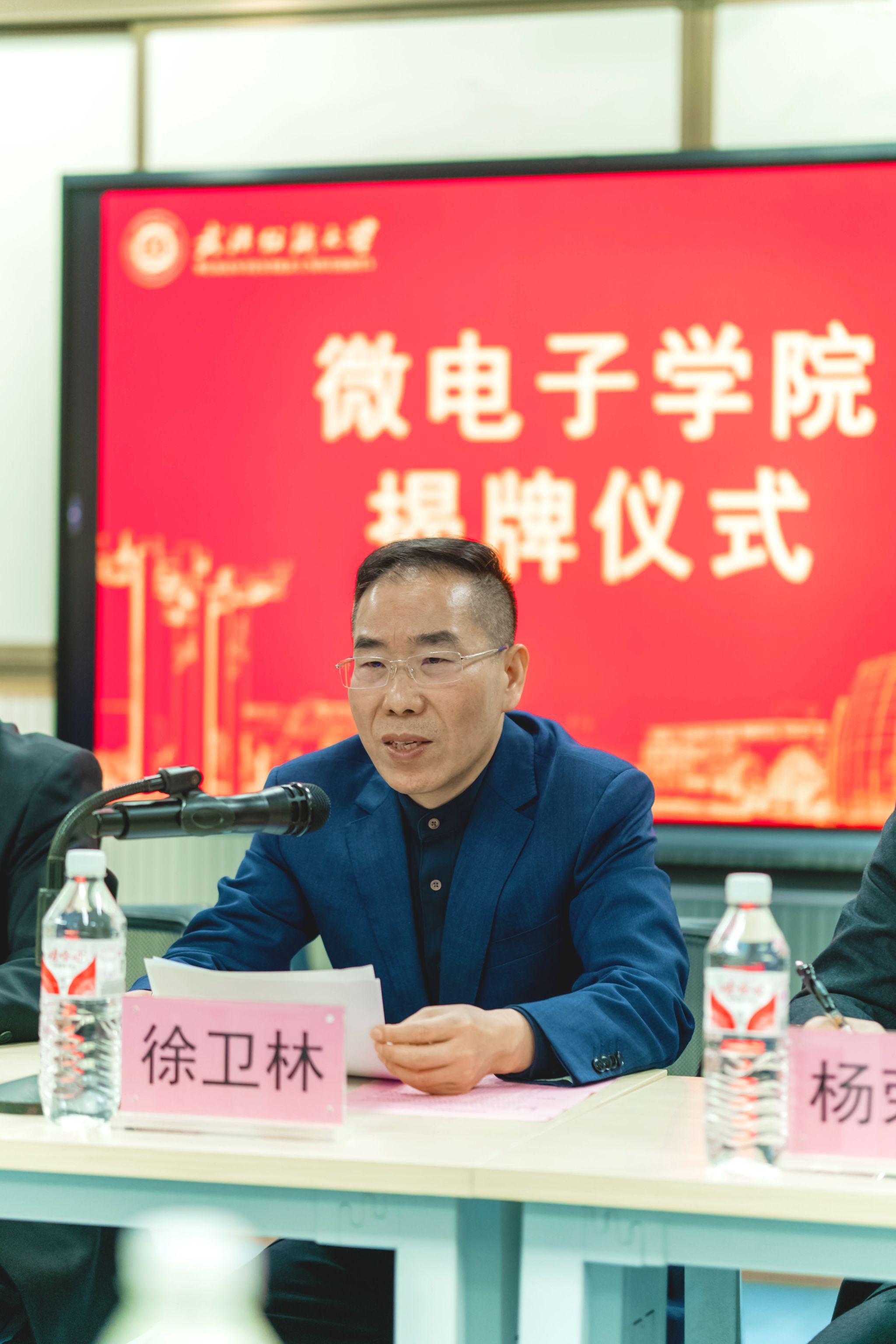 校党委书记田辉玉教授、校长徐卫林院士为微电子学院揭牌。