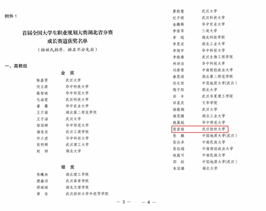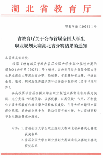 近期,首届全国大学生职业规划大赛湖北省分赛圆满落幕。本次大赛吸引了全省130余所高校,80万名大学生参赛,层层选拔后70所高校152名大学生进入湖北省分赛决赛。经过激烈角逐,学院微电子12202班张家铭同学荣获首届全国大学生职业规划大赛湖北省分赛成长赛道银奖。