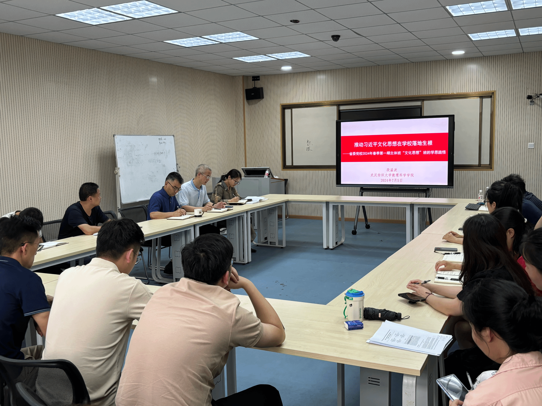 2024年7月4日下午,WilliamHill体育在崇文楼206室举办习近平文化思想专题班暨党委理论学习中心组第八次集体学习,学院党委委员、系(中心、办)主任、党支部书记、党支部委员、教授委员会主任、教学督导组长参加。学院党委书记段溢波以《推动习近平文化思想在学校落地生根》为题做辅导报告。