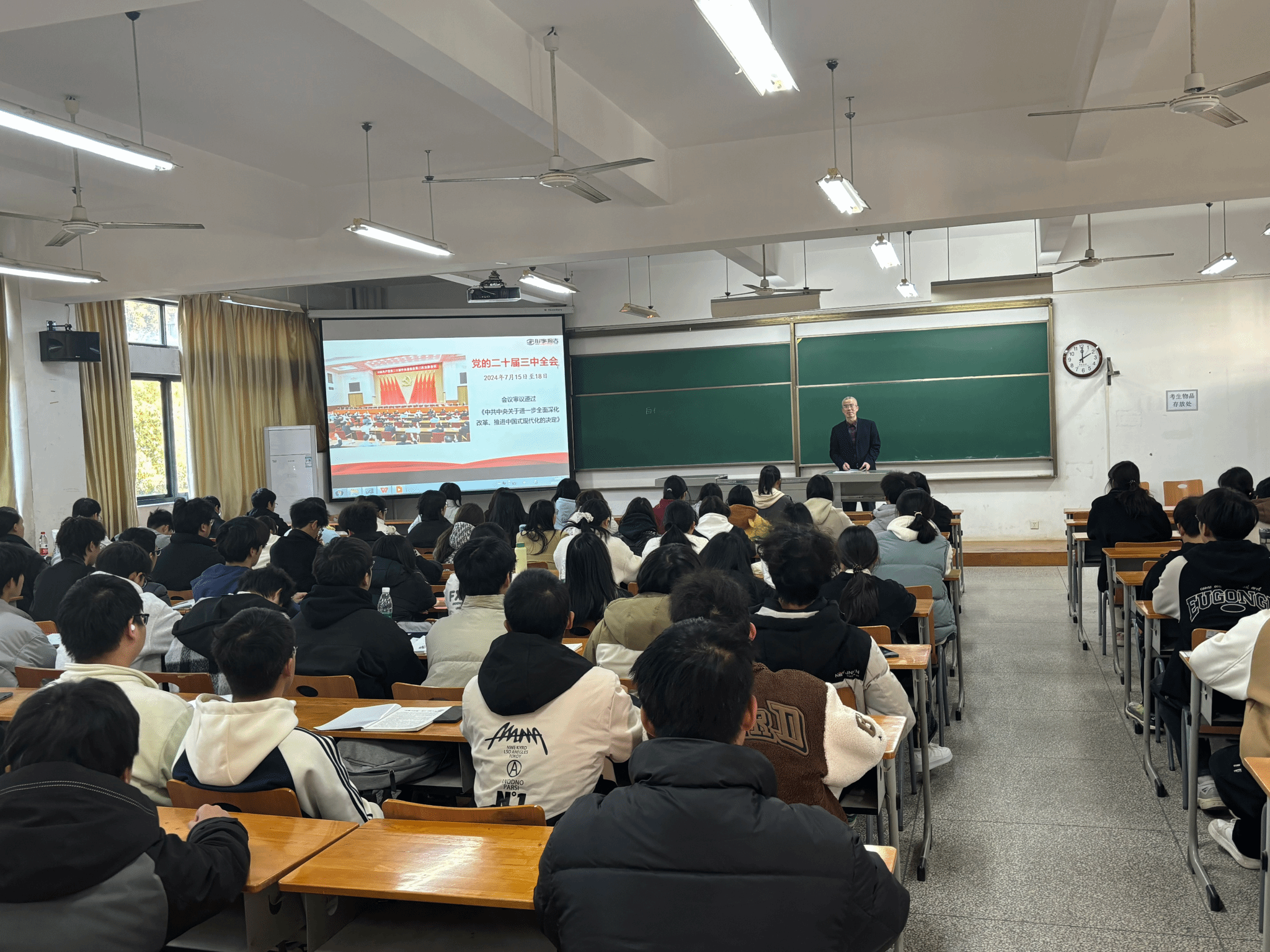 为引导广大青年学生学习领悟党的二十届三中全会精神,11月27日下午,WilliamHill体育党委书记段溢波以形势政策课宣讲方式,在阳光校区6号教学楼221教室,为学院24级新生开展了党的二十届三中全会精神专题宣讲。