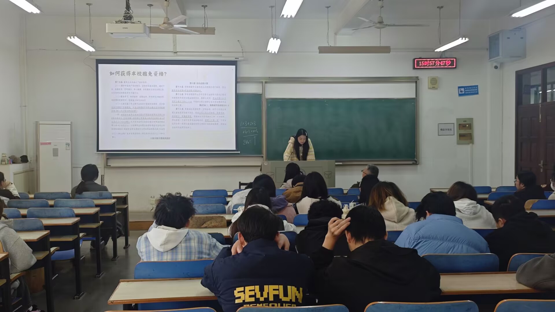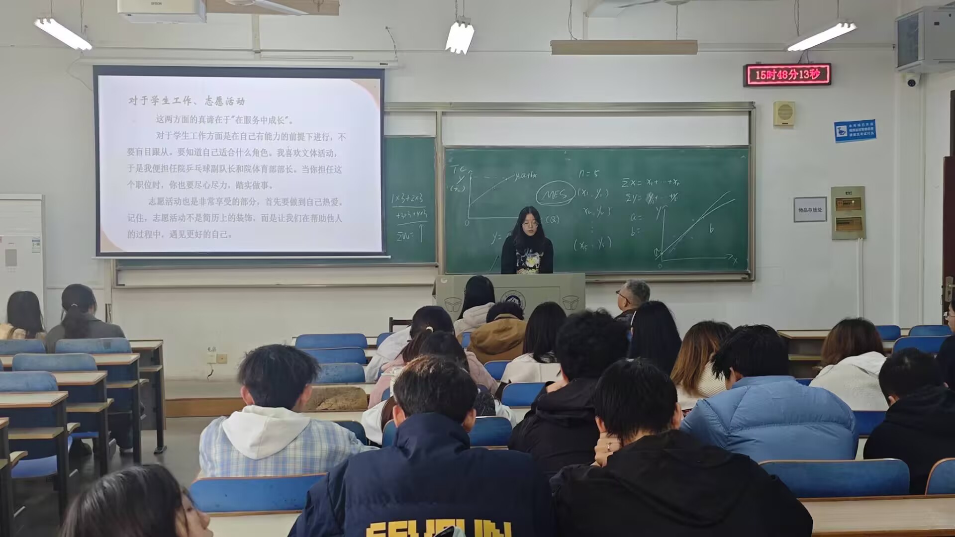 会议开始,三位优秀本科生代表率先分享成长心得,为现场同学提供实用参考:国家奖学金获得者苏宇以“行稳致远,追求卓越”为主题,结合自身专业学习与校园生活经历,鼓励同学们在专注学业的同时,保持对专业的热爱与探索欲,丰富大学生活维度;推免研究生代表李奕洋聚焦学科竞赛与升学规划,详细拆解了各类竞赛的备赛逻辑以及推免资格申请的核心条件与准备策略;另一位推免学姐张雅祺则从学习方法优化与推免流程梳理出发,分享了成绩提升的高效技巧,同时清晰梳理了推免申请的时间节点、材料准备及面试注意事项。
