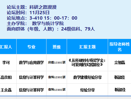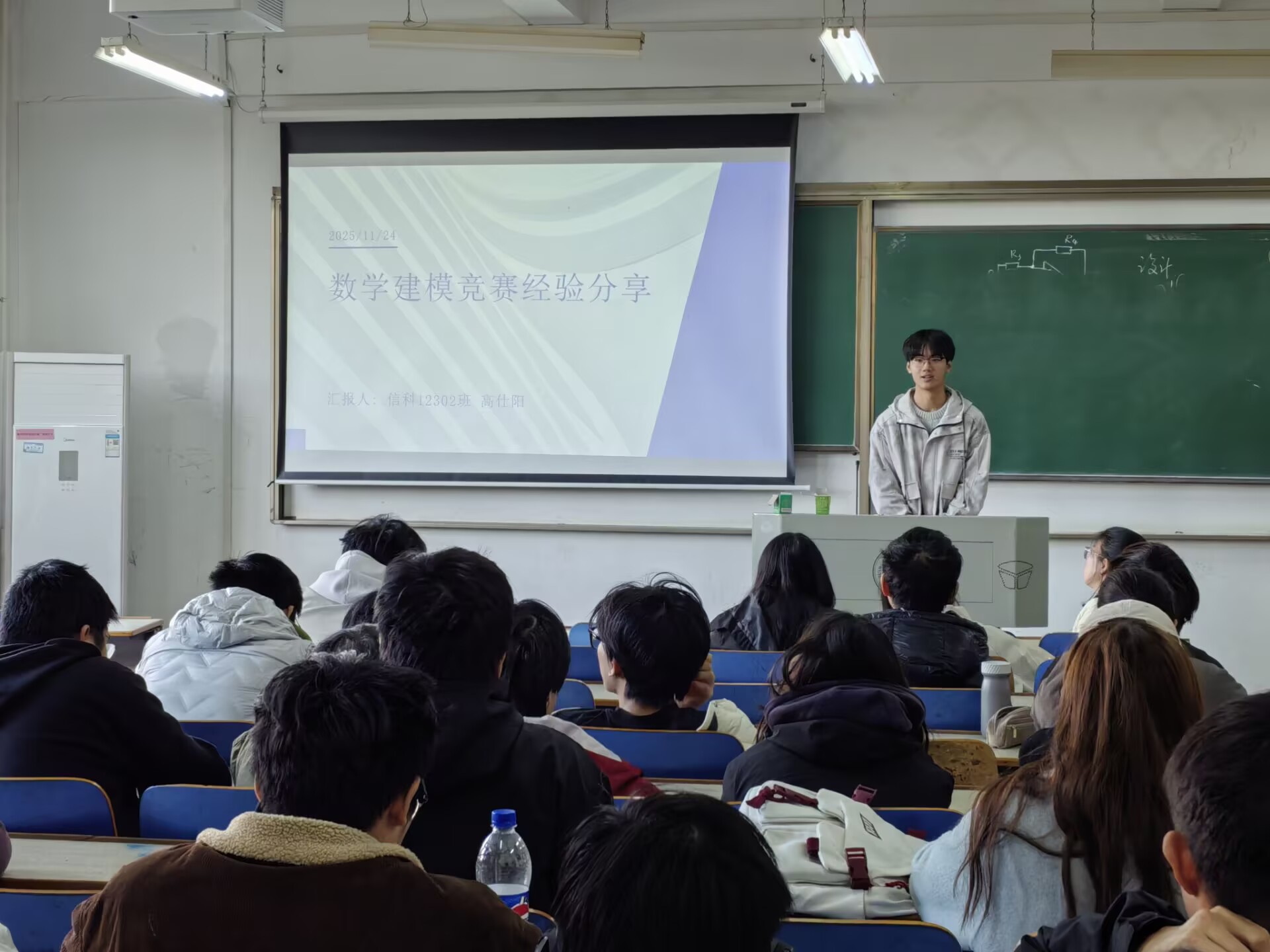 本次本科生论坛除了强调“人到、心到”的学习要求,论坛还特别邀请23级李可、高仕阳、王余磊同学分享经验。李可分享了“拆分复杂问题、组队互补学习”的备赛思路。高仕阳则提到“用思维导图梳理数分知识点、每天留1小时复盘错题”的学习方法。王余磊也补充了“主动找老师答疑、利用线上资源补薄弱环节”的实用心得,让在场同学收获满满。