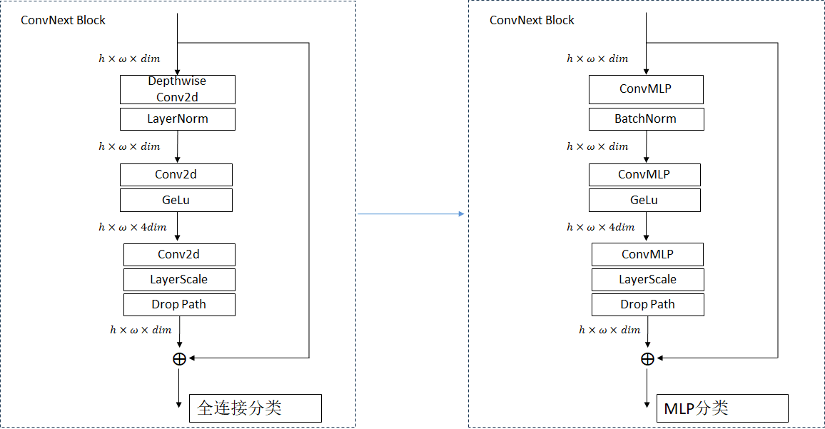 刘博:作为深度神经网络基本组成单元的感知机(MLP),具有算法简单易于实现,且适用于大规模数据集等优点。因此,在卷积结构变得越来越复杂的今天重新审视感知机的作用是一项颇有研究价值的事情。首先,我们以卷积层替换改知机中的全连接层,将其变成ConvMLP模块,在以MLP作为分类器替换softmax或全连接层分类器,最终在ConvNeXt模型中以ConvMLP替换深度可分离卷积和全连接分类器,以达到减少参数量目的。最终参数量为2.81M,相比原27.81M的参数量,参数量降低近93%。