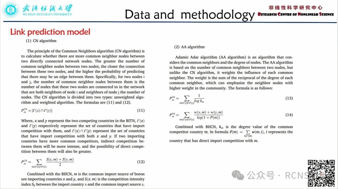 黄加阳:本次汇报了一篇文献《International trade evolution and competition prediction of boron ore: Based on complex network and link prediction 》。硼作为一种重要的非金属战略性矿产资源,在国家战略性新兴产业发展中占有重要地位。本文采用复杂网络方法、核心-外围模型和链路预测模型对硼矿国际贸易演变及未来潜在竞争态势进行了分析。具有沿海、港口和靠近硼矿产地等地理优势的国家将有更大程度的贸易选择和竞争性发展潜力。
