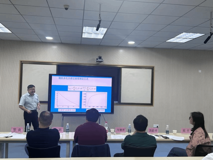 苗同军教授做了题为“温度影响下岩石渗透率的分形模型”的报告。他介绍温度影响下岩石渗透率的分形理论和分形模型。在岩石渗透率的研究中,温度相比应力对岩石的损伤更大,学界已把温度作为岩石流固耦合的一个重要因素。报告指出低温段温度增加时,孔隙率减小,孔隙面分形维数减小和迁曲度分形维数增加,岩石渗透率随温度增加而减小。高温段温度增加时,原有裂缝或孔隙延伸,孔隙率增大,孔隙面分形维数和迂曲度分形维数变化复杂。