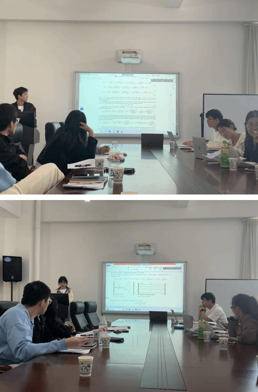 应用数学与交叉科学研究中心数学与纤维材料团队在2024年4月16日上午10:00于崇真楼3028教室进行每周小组组会,小组全体成员和各位导师共同参加。在这次组会上,由研二研一四名学生分别汇报自己的研究进展,然后老师与同学们对汇报内容进行学术探讨,并对存在的问题给出相应的指导和建议。