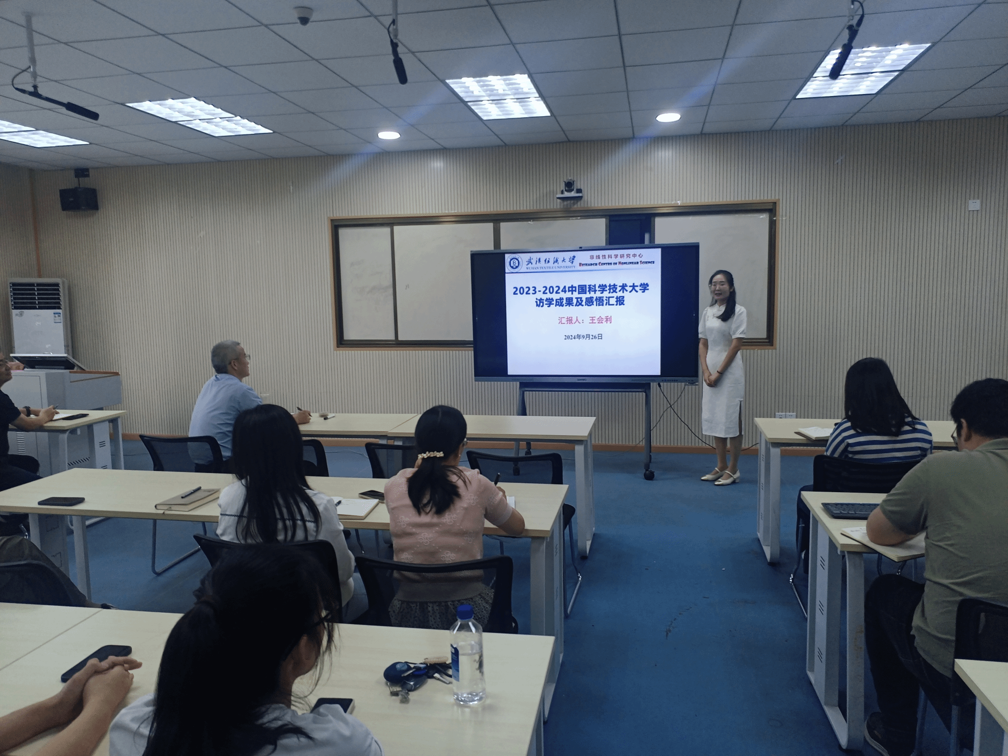 王会利老师分享了在中国科学技术大学访学的成果与感悟。详尽阐述了访学期间参与的前沿课题及研究成果,她分享到,访学不仅让她汲取了新知识,充实了科研经历,更极大地拓宽了学术视野,为未来的科研道路点亮了新方向。此次访学,王老师深受合作导师严谨治学精神的熏陶,感慨机会难得,倍感珍惜。