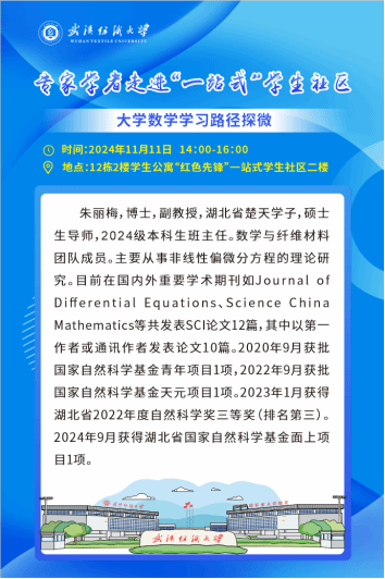 11月11日下午,数学与纤维材料团队师生一行深入12栋“一站式”学生社区与学生面对面。此次活动以“数织未来:纤维与数学的交汇”为题,由朱丽梅博士主持,12栋,以及5栋、15栋部分同学参加。