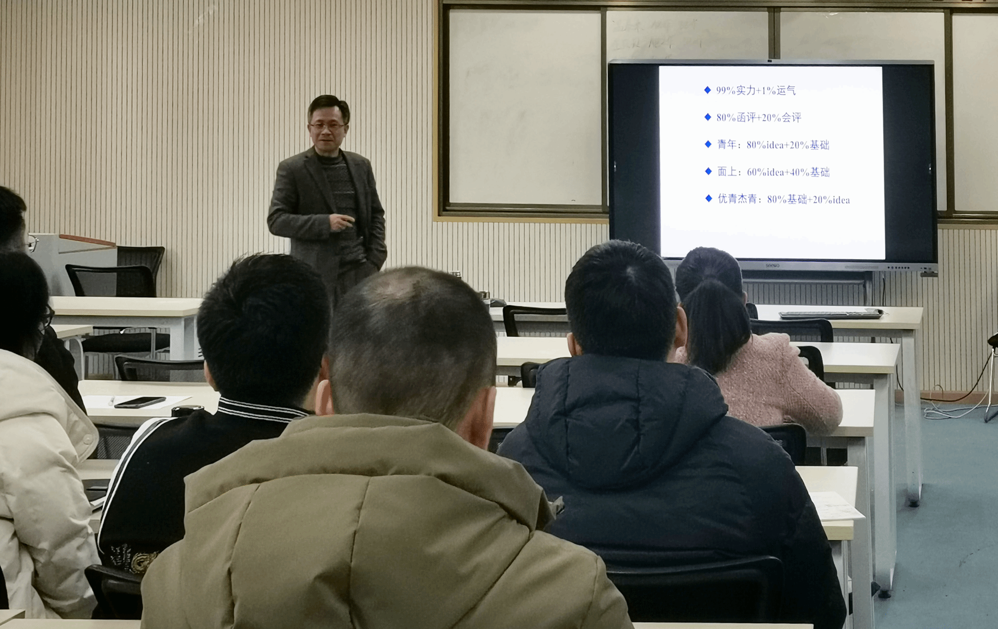 何云斌教授以“国家基金申请的点滴体会”为主题向学院老师们讲授了国家自然科学基金的相关政策、评审要点、撰写注意事项及自己申请项目的心得体会。此外,何教授还结合自己丰富的科研经验和基金申报成功案例,向与会老师们详细讲解了项目申报书的撰写技巧,包括项目立项依据的撰写,关键科学问题及创新点的凝练,研究内容、研究目标及研究方案间的异同之处等,为参会教师提供了宝贵的项目申请经验。