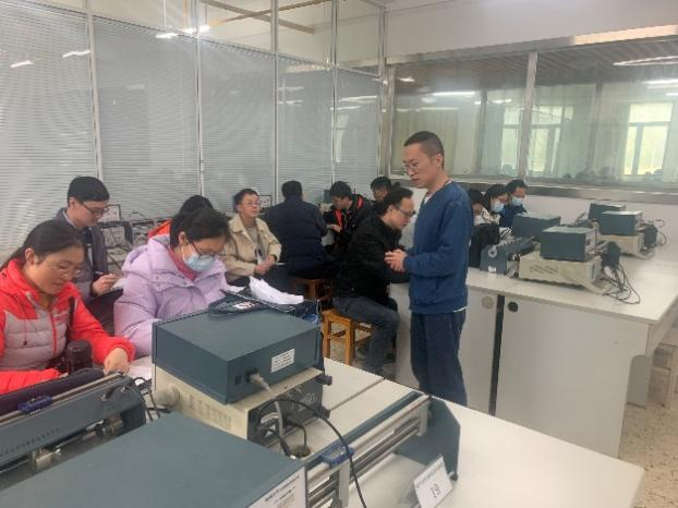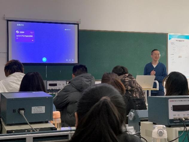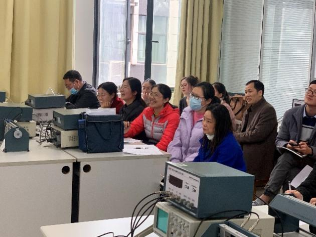 大学物理实验教学示范中心汪枫老师以《超声波声速测量》一课向各位观摩的老师展示了如何“寓理于事”。他带领同学们横贯古今,思接千载,从三分损益法到奋斗者号探万米深海,感受中国传统文化和现代科学的魅力,在文化思想和科学思维的交融中,以问题为驱动,深入探究超声波传播速度的测量原理和实验方法,帮助同学们塑造联系性的思维意识,能够正确辨识知识点背后的客观规律。通过叙事的方式融合知识点来启发学生进行思考和互动,加上幽默的互动语言提升课堂参与度,双向奔赴的“教”与“学”课堂氛围受到了老师们的好评。课后交流期间,教师们纷纷针对本堂课教学的亮点进行求教,对可以丰富和改善的地方也贡献自己的简介,尤其是部分资深教师与汪老师的探讨与互动中,让每位新教师都收益匪浅。