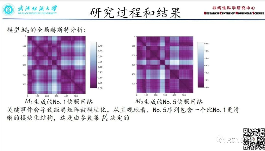 刑畅:分享了一篇于今年2月份发表于Chaos上的名为《Hurst analysis of dynamic networks》的文章,文章构建了一个快照网络的多重分形分析,其中赫斯特积分被用来描述隐藏在结构动力学中的分形结构。其次,对网络模型进行了调整,并进行了比较分析,以阐明Hurst指数的意义,发现了快照网络通常包含多个分形结构,如局部和全局分形结构。最后,讨论了两个真实网络数据集的分形结构。发现真实的快照网络也包含了丰富的动态,可以用赫斯特指数来区分。特别是,金融网络的动力学包括多重分形结构。文章为研究动态网络提供了一个视角,从而间接地描述了复杂系统动力学的分形特性。